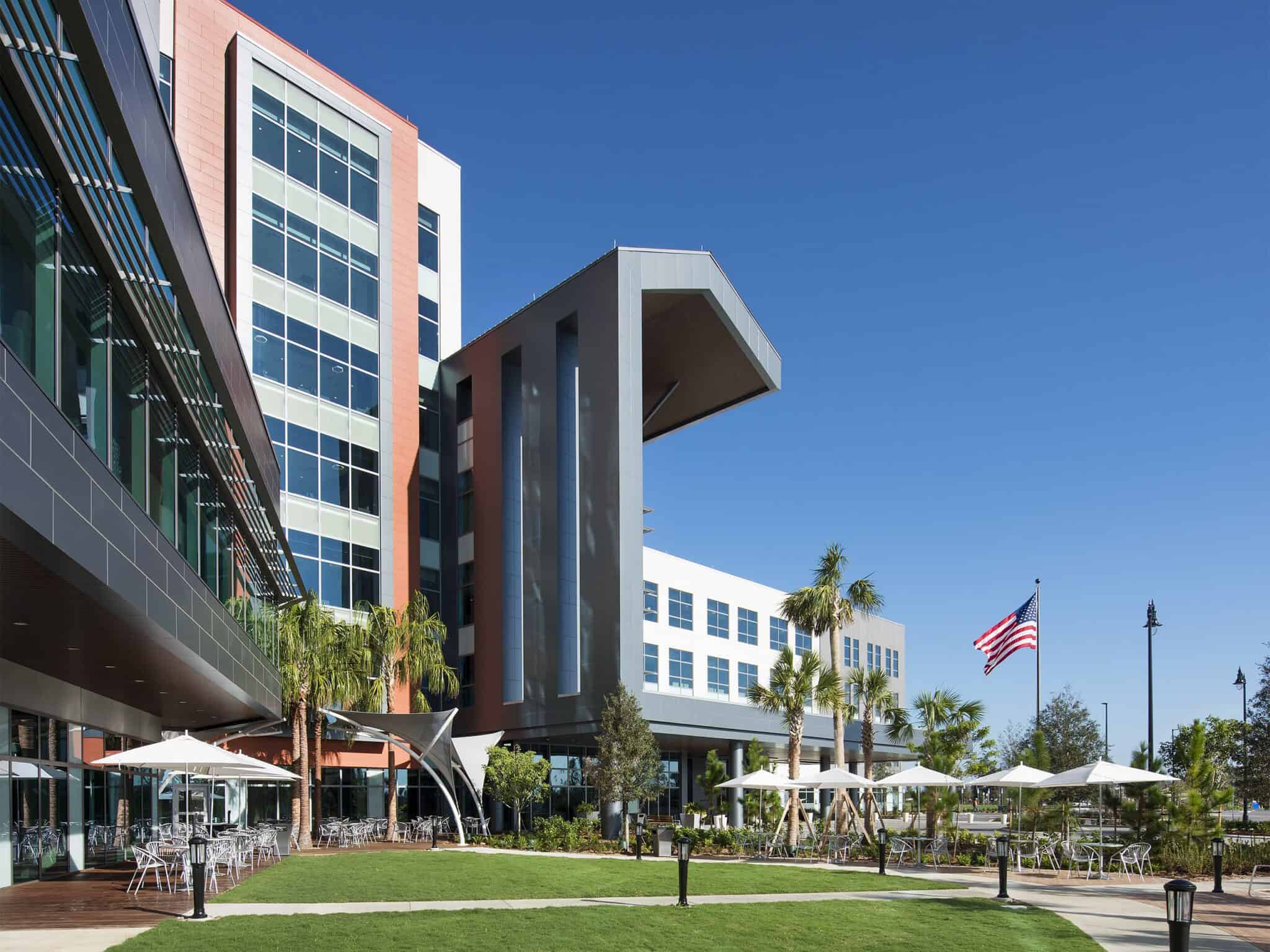 Enterprise Solutions delivered complete electrical construction for Florida Hospital’s new Apopka campus, a multi‑building healthcare complex developed to expand access to advanced medical care for Central Florida families. The project includes a seven‑story, 600,000 sq ft hospital and a four‑story, 200,000 sq ft medical office building on a 70‑acre campus, with site planning that prioritizes patient experience, natural light, and future growth.