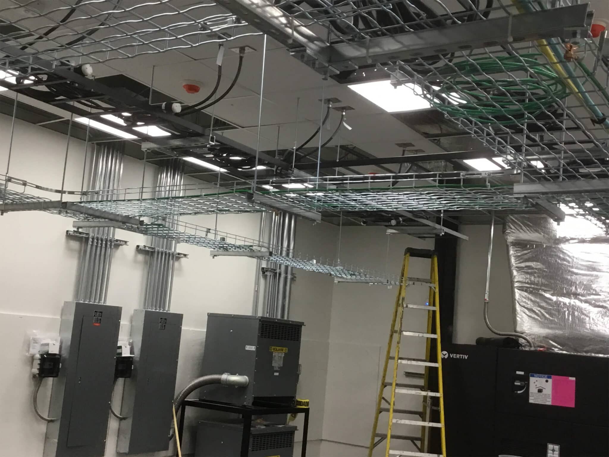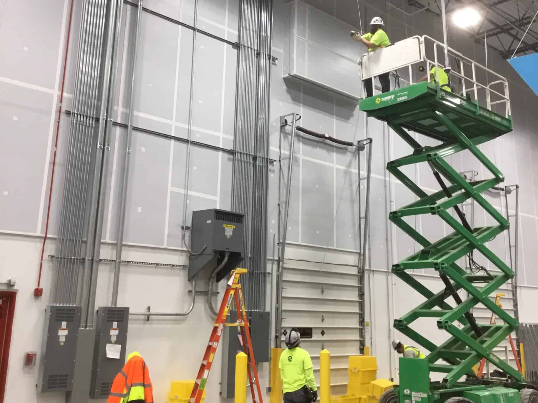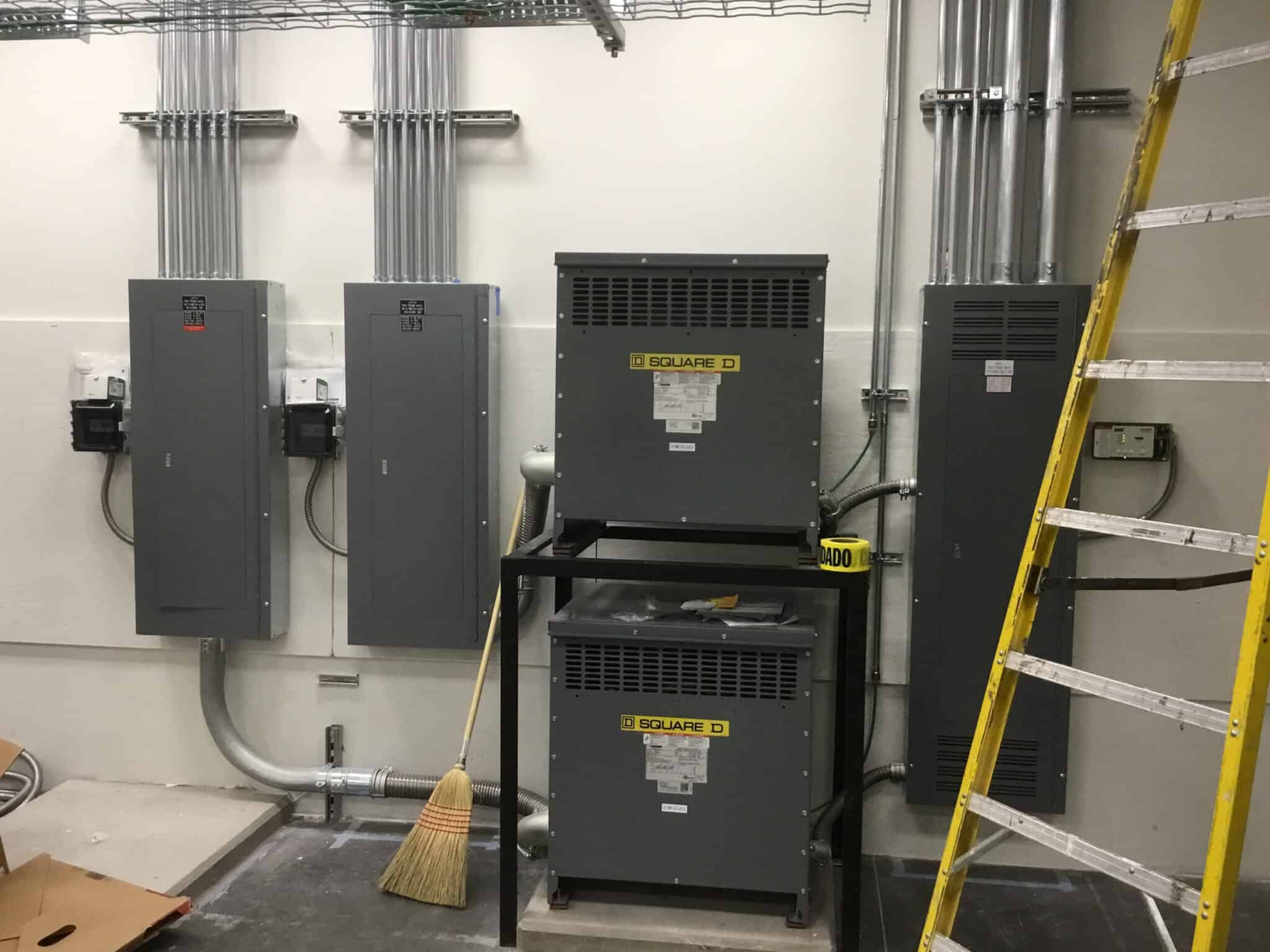 To ensure uninterrupted operations, all work was executed during off-hours from 7:00 p.m. to 5:30 a.m. Our comprehensive scope included installation of electrical feeds to the computer test lab supporting new 112.5 kVA transformers and a 400-amp load center, implementation of customized Modular Wiring Systems designed to integrate seamlessly with the owner’s racking installation, and power infrastructure for twenty lift charging stations.