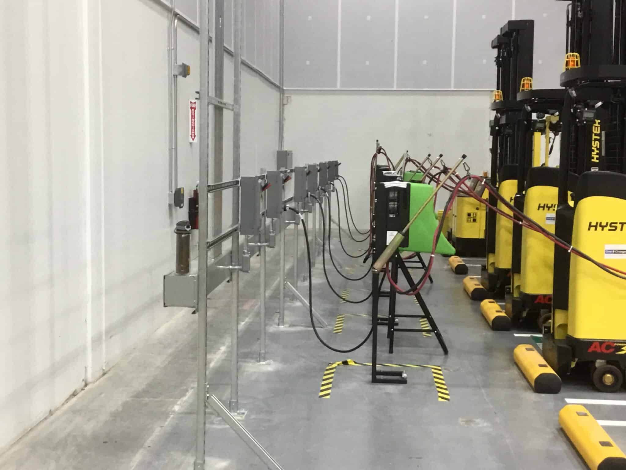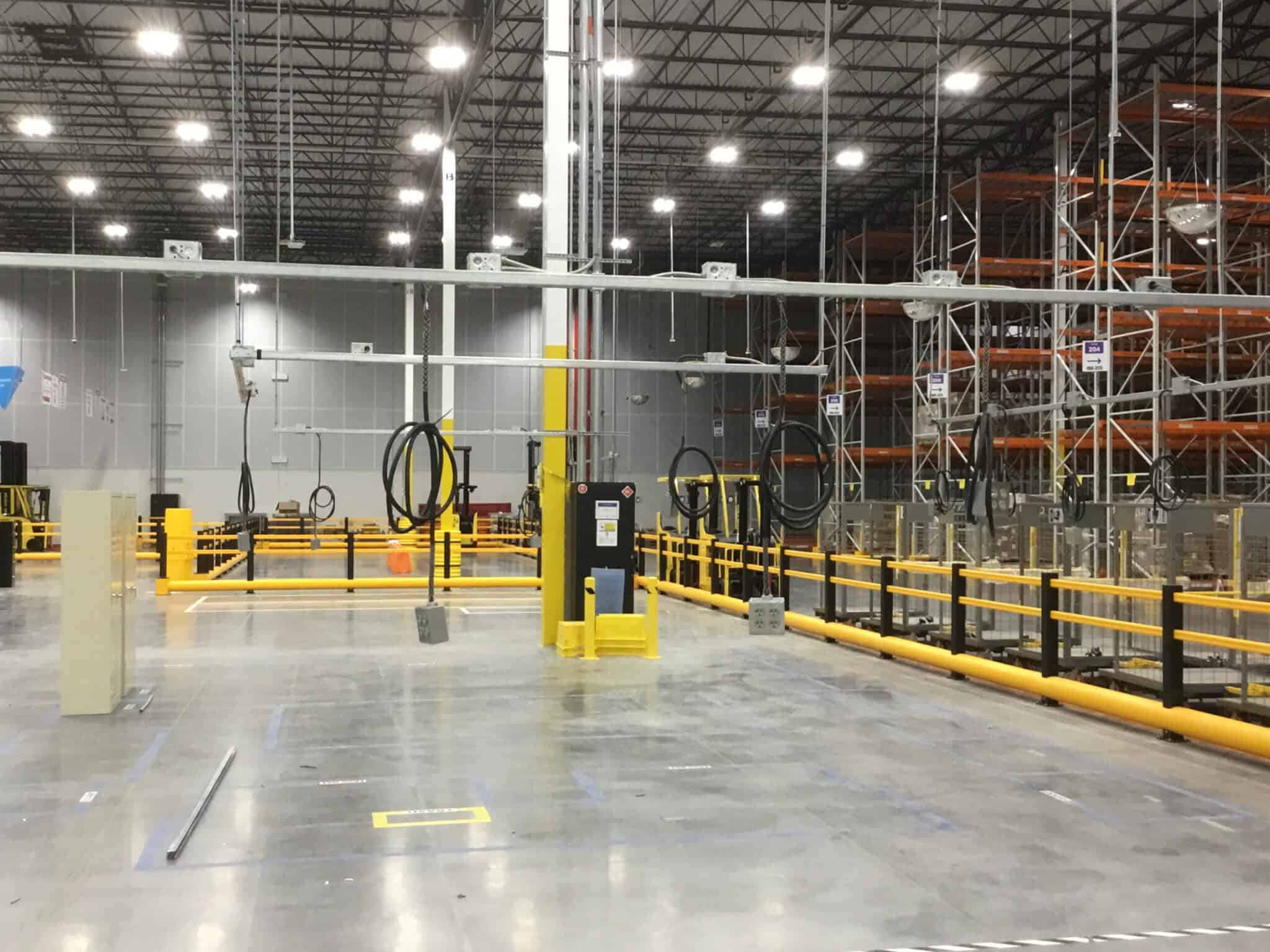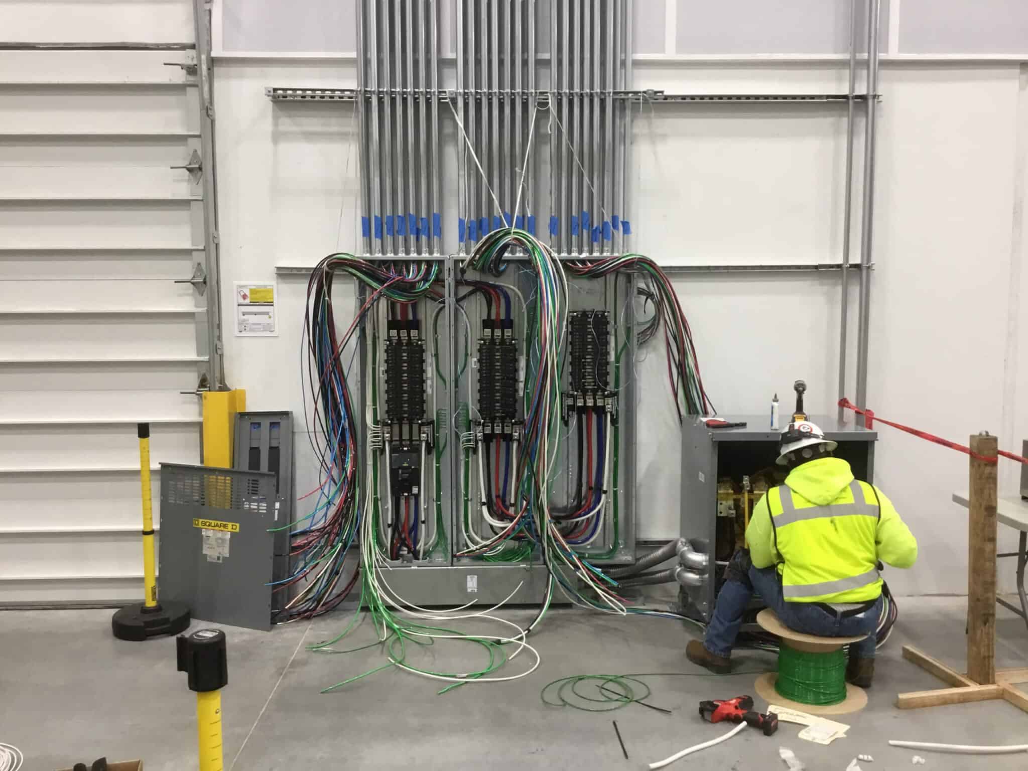 To ensure uninterrupted operations, all work was executed during off-hours from 7:00 p.m. to 5:30 a.m. Our comprehensive scope included installation of electrical feeds to the computer test lab supporting new 112.5 kVA transformers and a 400-amp load center, implementation of customized Modular Wiring Systems designed to integrate seamlessly with the owner’s racking installation, and power infrastructure for twenty lift charging stations.
